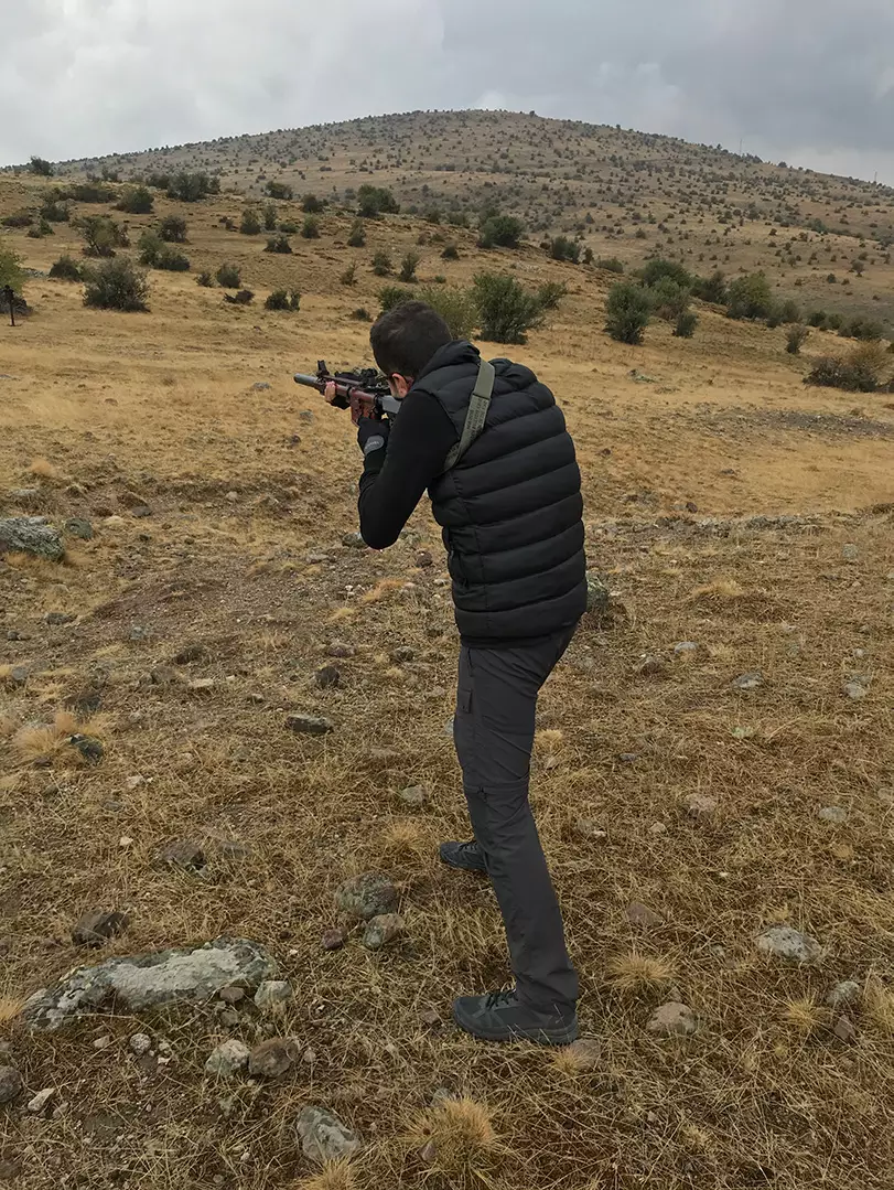 Düşük Hazır – Yüksek Hazır oturmuş, postür düzgün, nişan alırken en rahat pozisyonu vücut kendi bulmuş, ders sonundaki gülümsemem ondan kaynaklı. Bir miktar efor gerektiren ve yakın mesafe muharebelerine giriş niteliğinde olan kurs; önceki çalışmalarımızda mevzi ve şarjör yenileme çalışmasıyla birleştirdiğimizde, öğrencinin kendisini savunmak durumunda kaldığında tüfeğinden en yüksek faydayı almasına yönelik.