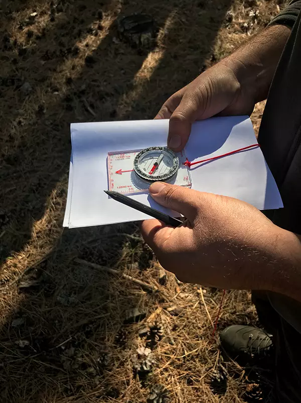 Öğrencinin kendi psikolojik sınırlarını görmesi ve arazi koşullarında güven artırmak için hazırladığımız bu iki günlük müfredatta tabi ki çadırda kalmadık. Rüzgarı kestik, yerden gelen soğuğu kestik, ateş yakacağımız çukuru kazdık ve bunların tamamını sadece bir bıçakla yaptık. İlk gün barınak yaparak ve dışarıda geçireceğimiz geceye psikolojimizi hazırlayarak geçti. İkinci gün harita, telsiz ve hedeflenen lokasyona gitmek için çalıştık.